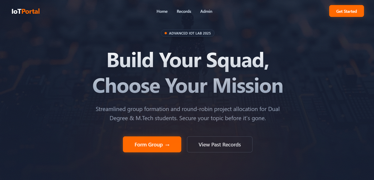 Streamlined group formation and round-robin project allocation for Dual Degree & M.Tech students. Secure your topic before it's gone.